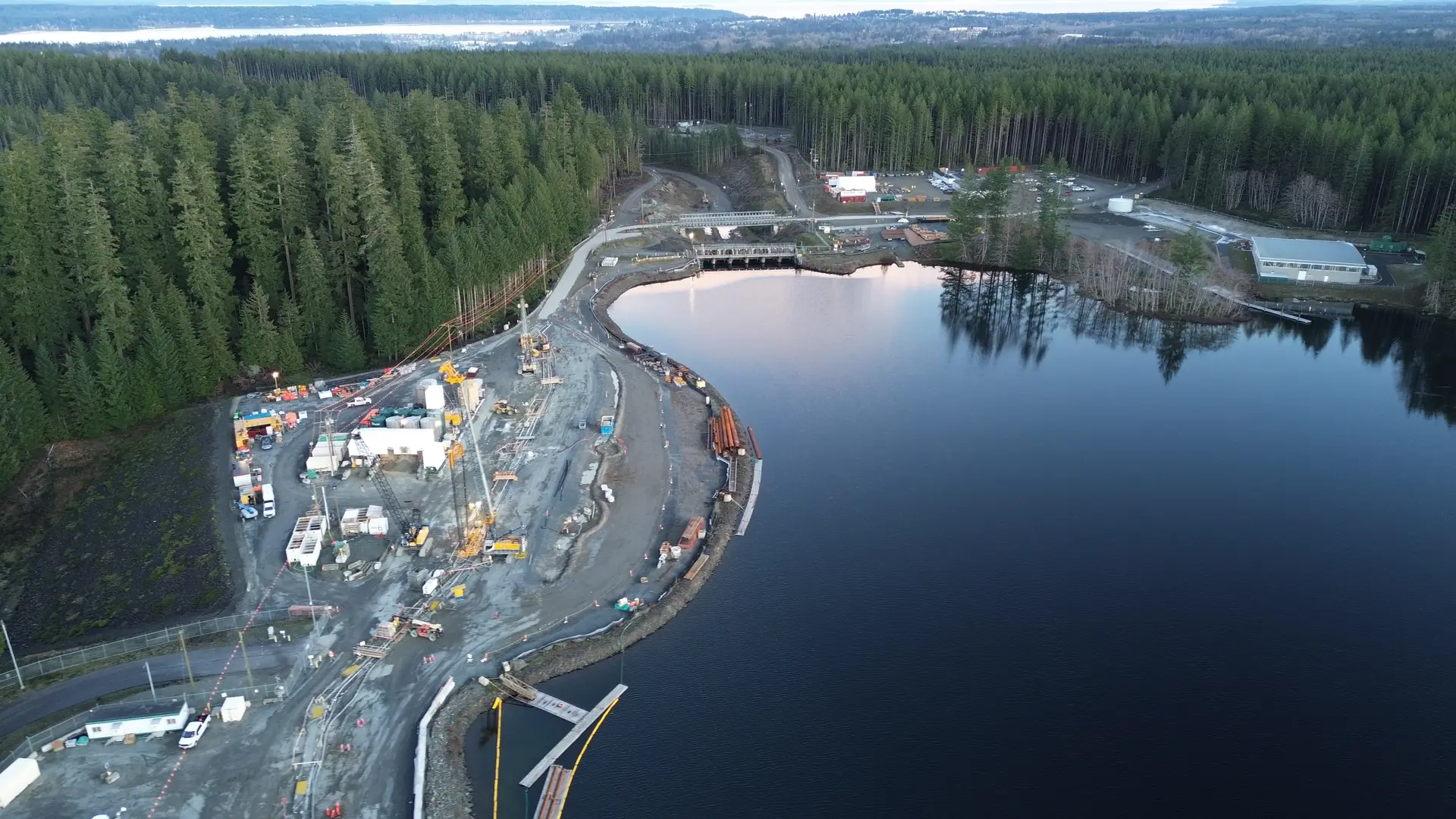 The project, which is managed by Aecon/EBC General Partnership (AEGP), includes constructing a low permeability plastic concrete cut-off wall on the Middle Earth-fill Dam to improve the water barriers and seismic performance of the earth-fill section. This work was crucial in order to increase the dam’s seismic resistance and minimize the risk of floods and other damage to the public. In addition to the cut-off wall works, Bauer performed soil improvement on the soft sediments to reinforce the North Earth-fill Dam. Bauer’s construction tasks included installation of the plastic concrete cutoff wall as well as land and marine densification for the new upgraded earth-fill berms. The major challenge: Minimizing the environmental impact to the reservoir, Campbell River and surrounding park during construction, particularly close to the drinking water extraction point for Campbell River. The work began in October 2023 and was successfully completed in July 2024. Another phase of soil improvement will follow in 2025.